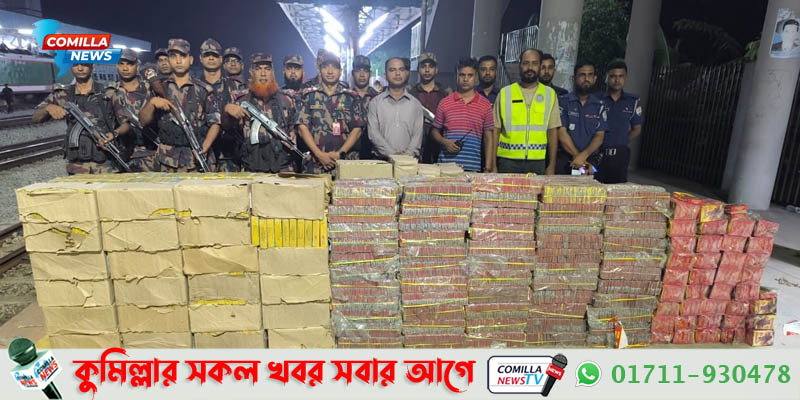 কুমিল্লার সদর দক্ষিণ উপজেলার রসুলপুর রেলওয়ে স্টেশনে বিশেষ টাস্কফোর্স অভিযানে বিপুল পরিমাণ ভারতীয় বাজি আটক করেছে বর্ডার গার্ড বাংলাদেশ (বিজিবি)। জব্দ করা বাজির আনুমানিক বাজারমূল্য এক কোটি ৩৭ লাখ ১০ হাজার টাকা।