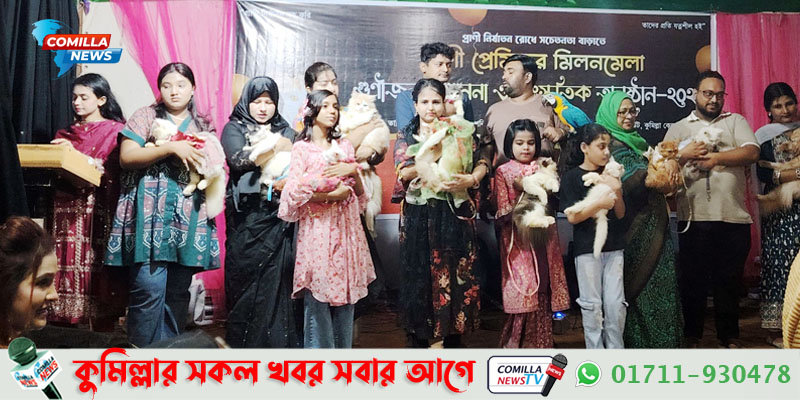 কুমিল্লায় দৃষ্টান্ত ফাউন্ডেশন, কুমিল্লা ও ক্যাট’স হোম বিড়ালের বাড়ি এর আয়োজনে ‘প্রানী নির্যাতন রোধে সচেতনতা বাড়াতে “প্রানী প্রেমীদের মিলন মেলা, গুনীজন সম্মাননা ও সাংস্কৃতিক অনুষ্ঠান- ২০২৫” অনুষ্ঠিত হয়েছে।