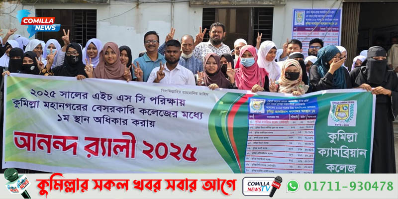 গেলো বছরের তুলনায় এ বছর কুমিল্লা বোর্ডে ফলাফল নিন্মগামী হলেও ক্যামব্রিয়ান কলেজ তার ধারাবাহিক সফলতা অব্যহত রেখেছে। রোববার শিক্ষার্থীরা কলেজ ক্যাম্পাসে আনন্দ মিছিল করে।