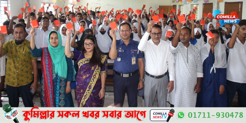বিদ্যালয়ের ৩০০ শিক্ষার্থী মাদক, ইভটিজিং ও স্মার্ট ফোনে আসক্তিকে লাল কার্ড প্রদর্শন করে শপথ নেন।