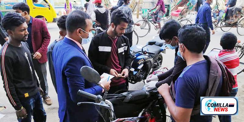 মাহফুজ নান্টু।। কারো লাইসেন্স নেই। কারো বা হেলমেট নেই। এমন সব বাইক আরোহীদের বিরুদ্ধে অভিযান শুরু করেছে কুমিল্লা জেলা প্রশাসন। সোমবার পরিচালিত অভিযানে ৫০ টি মামলায় ১৬ হাজার টাকা জরিমানা আদায় করা হয়েছে।