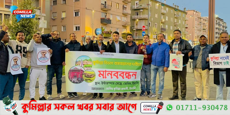 কুমিল্লা বিভাগ বাস্তবায়নের দাবিতে ইতালির ভেনিসে প্রবাসী কুমিল্লাবাসীদের উদ্যোগে মানববন্ধন অনুষ্ঠিত হয়েছে।