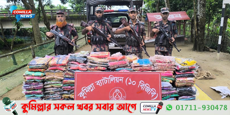 কুমিল্লা জেলার সীমান্ত এলাকা থেকে বিপুল পরিমাণ ভারতীয় শাড়ি ও থ্রি-পিস জব্দ করেছে কুমিল্লা ব্যাটালিয়ন (১০ বিজিবি)। বৃহস্পতিবার (০২ অক্টোবর) দুপুরে আদর্শ সদর উপজেলার বিবিরবাজার সীমান্ত এলাকায় এ অভিযান পরিচালনা করে সীমান্ত রক্ষী বাহিনী।