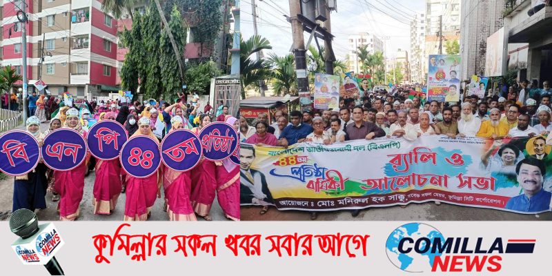 বাংলাদেশ জাতীয়তাবাদী দল বিএনপির ৪৪ তম প্রতিষ্ঠা বার্ষিকীতে নগর কুমিল্লায় ঢল নামে মনিরুল হক সাক্কুর সমর্থিত বিএনপির  নেতাকর্মীদের। বাঁশি ও ঢোলের সাথে স্লোগানে স্লোগানে মুখরিত হয়ে উঠো গোটা নগরী।