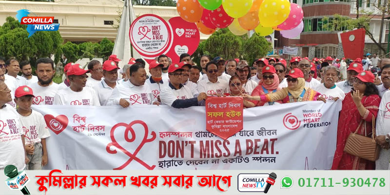 “স্পন্দন থামলে থেমে যাবে জীবন, হারাতে দেবেন না একটিও স্পন্দন”এই প্রতিপাদ্যকে সামনে রেখে কুমিল্লায় বিশ্ব হার্ট দিবস পালিত হয়েছে। কুমিল্লা হার্ট ফাউন্ডেশন ও ইনার হুইল ক্লাবের যৌথ উদ্যোগে সোমবার (২৯ সেপ্টেম্বর) সকালে টাউন হল প্রাঙ্গণ থেকে একটি সচেতনতা র্যালি বের হয়। র্যালিটি নগরীর প্রধান সড়ক প্রদক্ষিণ করে কুমিল্লা ক্লাবে এসে শেষ হয়।