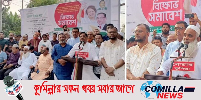 সোমবার বিকালে দিকে কুমিল্লা নগরীর চর্থা চৌমুহনী এলাকায় ৬টি ওয়ার্ডের বিএনপির বিক্ষোভ সমাবেশে প্রধান অতিথির বক্তব্যে তিনি এসব কথা বলেন। জ্বালানি তেল, পরিবহন ভাড়াসহ সকল দ্রব্যের মূল্য বৃদ্ধি এবং ভোলায় ছাত্রদল নেতা নুরে আলম ও স্বেচ্ছাসেবক দল নেতা আব্দুর রহিম হত্যার প্রতিবাদে এই বিক্ষোভ সমাবেশের আয়োজন করে কুমিল্লা মহানগর বিএনপি।