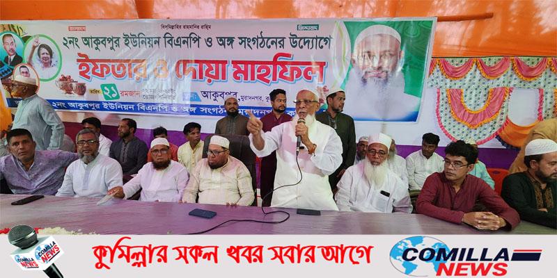 মুরাদনগর উপজেলা বিএনপির আহবায়ক সাবেক চেয়ারম্যান মহিউদ্দিন অন্জনের সভাপতিত্বে ইফতার মাহফিলে বিশেষ অতিথির বক্তব্য রাখেন কুমিল্লা উত্তর জেলা বিএনপির যুগ্ম আহবায়ক সাবেক ৬ বারের চেয়ারম্যান সৈয়দ মীর তৌফিক আহমেদ।